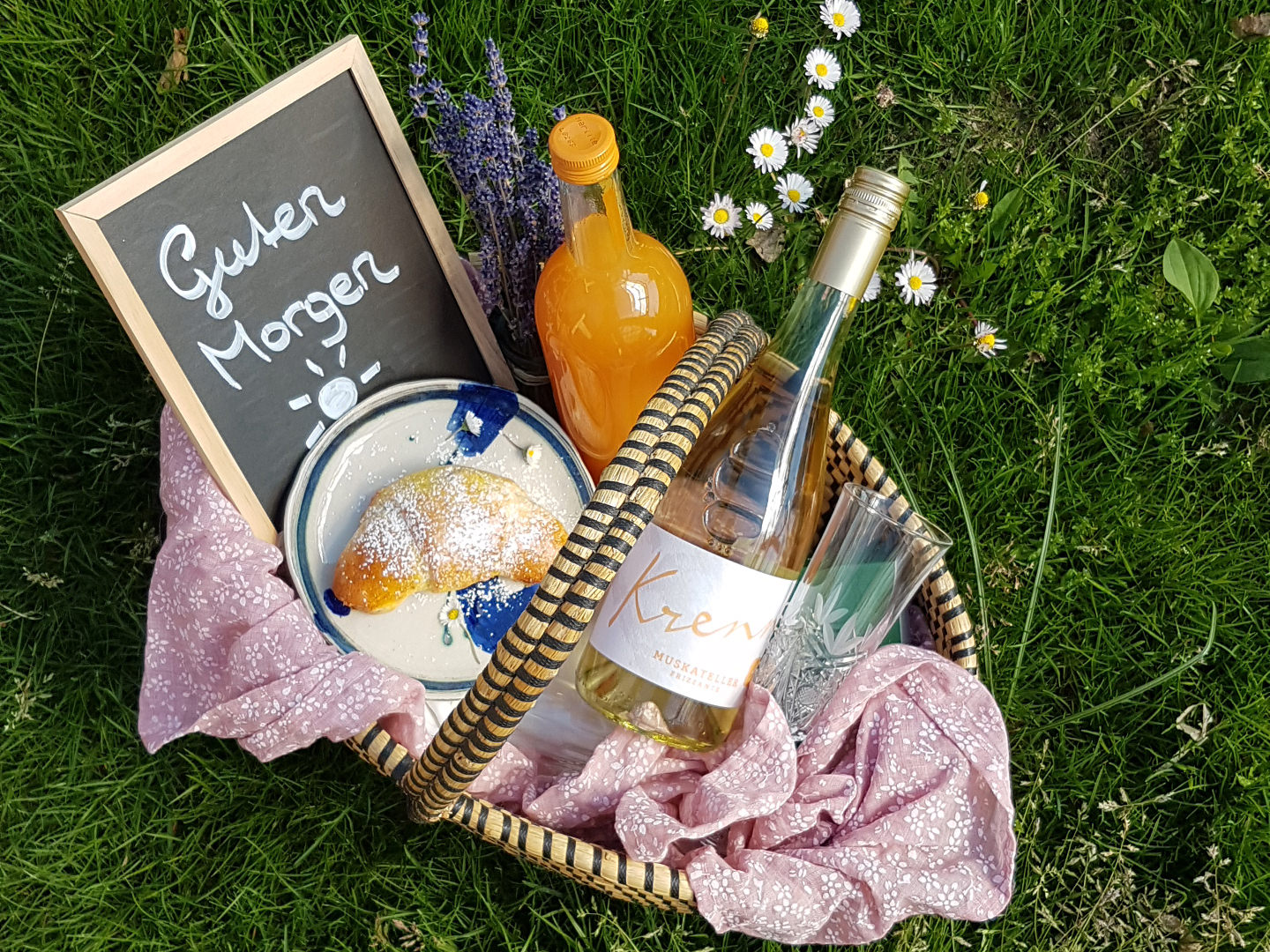 Ein bunter, vielfältiger Picknickkorb mit allem, was das Herz begehrt. Regional, saisonal, hausgemacht und mit ganz viel Liebe! Hausgebackenes Brot, Aufstriche, Fingerfood, Süßspeisen und allerlei feine Schmankerl. Von der Jahreszeit inspiriert und mit Wildkräutern, Obst & Blüten verfeinert. Die Zutaten kommen direkt aus dem Hof-Garten, Wald & Wiese sowie vom Bauern aus dem steirischen Vulkanland.