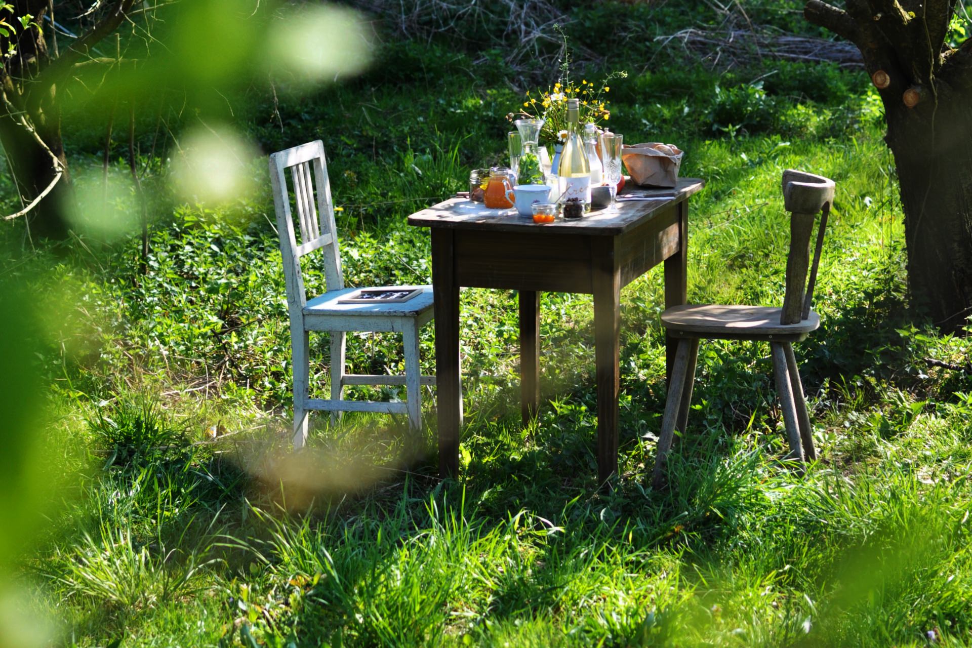 Picknickdecken, Sitzgelegenheiten im Weingarten